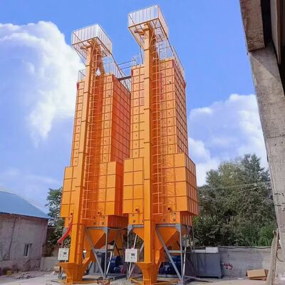 It adopts rotary heating device, it can output enough hot air in a short time and dry the grains which is passing through.