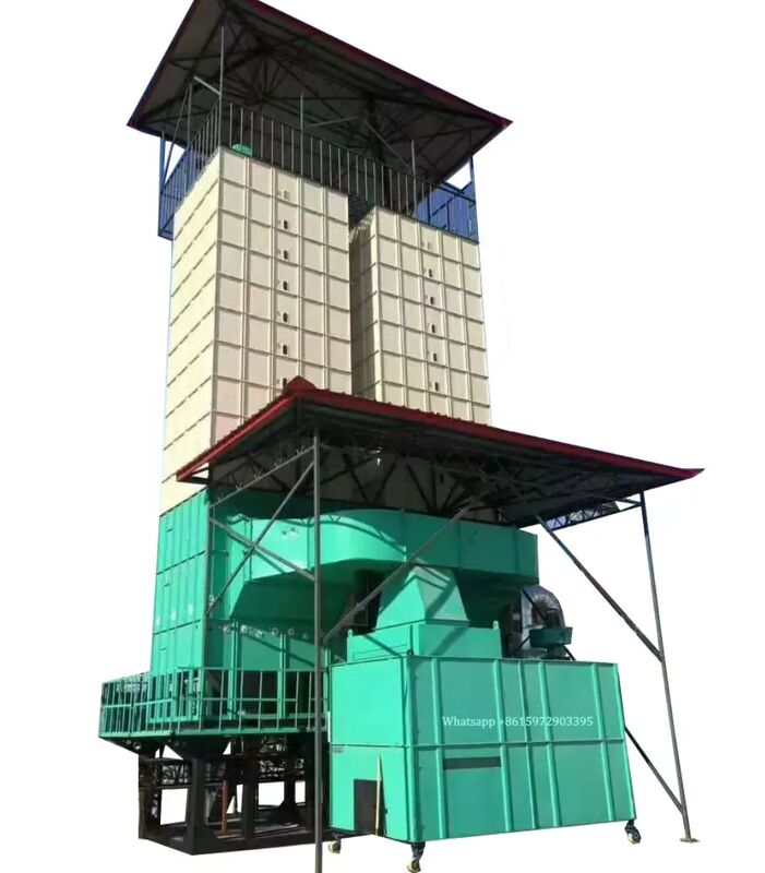 It adopts rotary heating device, it can output enough hot air in a short time and dry the grains which is passing through.
